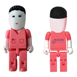 The people shaped USB drive has swing legs and arms, make it an unique promotional item for clinics, hospitals, pharmaceutical companies, medical school or anything medical / health care related. Remove the figure's head to reveal the USB drive. Stock shapes include doctor, surgeon, female nurse, male nurse and professional figure. For 3000pcs or more, uniform, color, skin tone, hair style and gender can all be customized. Available in 32MB, 64MB, 128MB, 256MB, 512MB, 1GB, 2GB, 4GB, 8GB, 16GB, 32GB, 64GB, 128GB and more. Also available in USB 3.0.